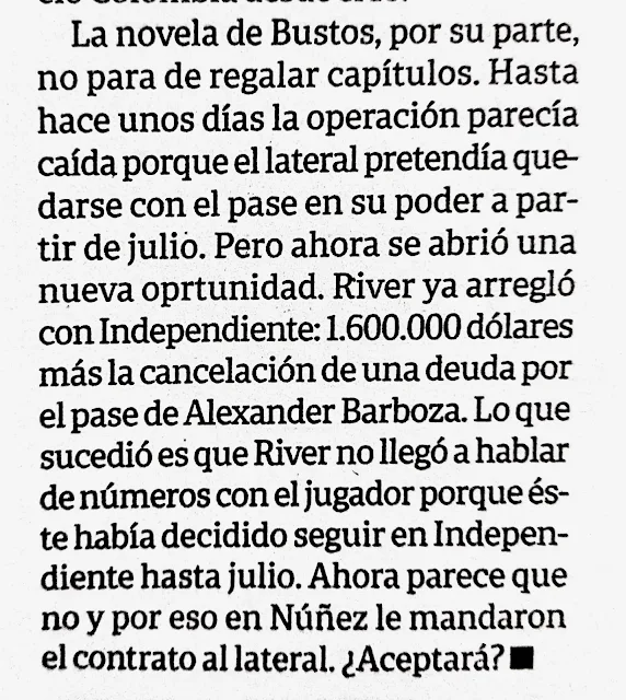 Sobre Independiente el matutino no trae un espacio particular, aunque ayer en medios brasileños surgió la noticia de que Silvio Romero se iría a préstamo con cargo y con obligación de compra a Fortaleza de Brasil .-