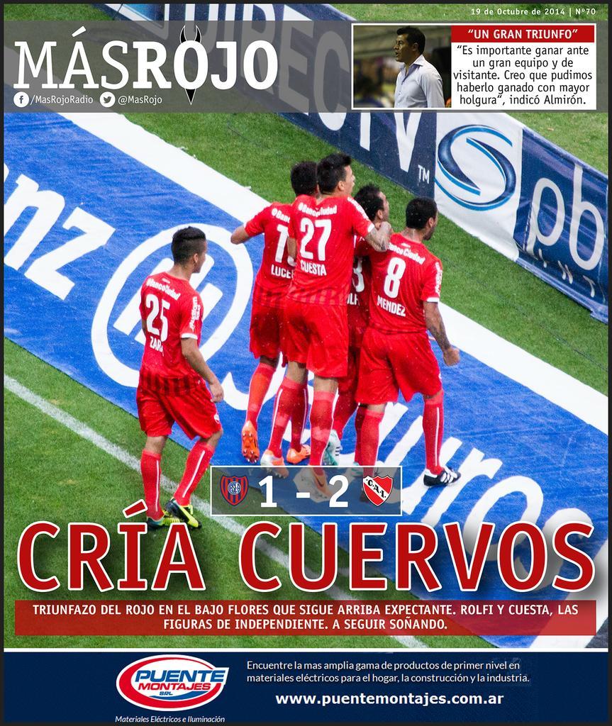 Esta es la portada de MAS ROJO, y a continuación puntajes y notas del medio que conduce Ariel Vilachá.
