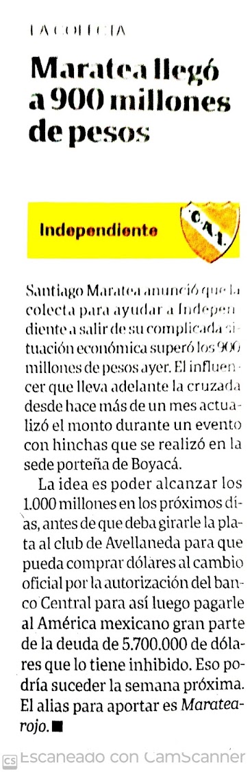 Clarín: Maratea llegó a 900 millones de pesos.-